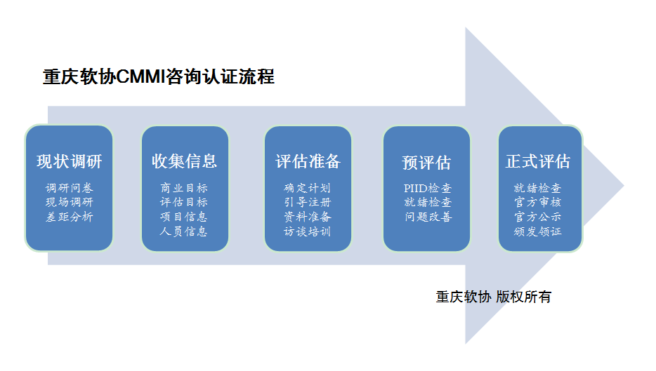 提升管理水平。CMMI帮助企业建立了规范的软件研发过程,提升了企业的研发管理水平;CMMI帮助企业建立过程资产库,将企业的知识经验进行收集和分享,从而解决人员流动给企业带来的影响。
